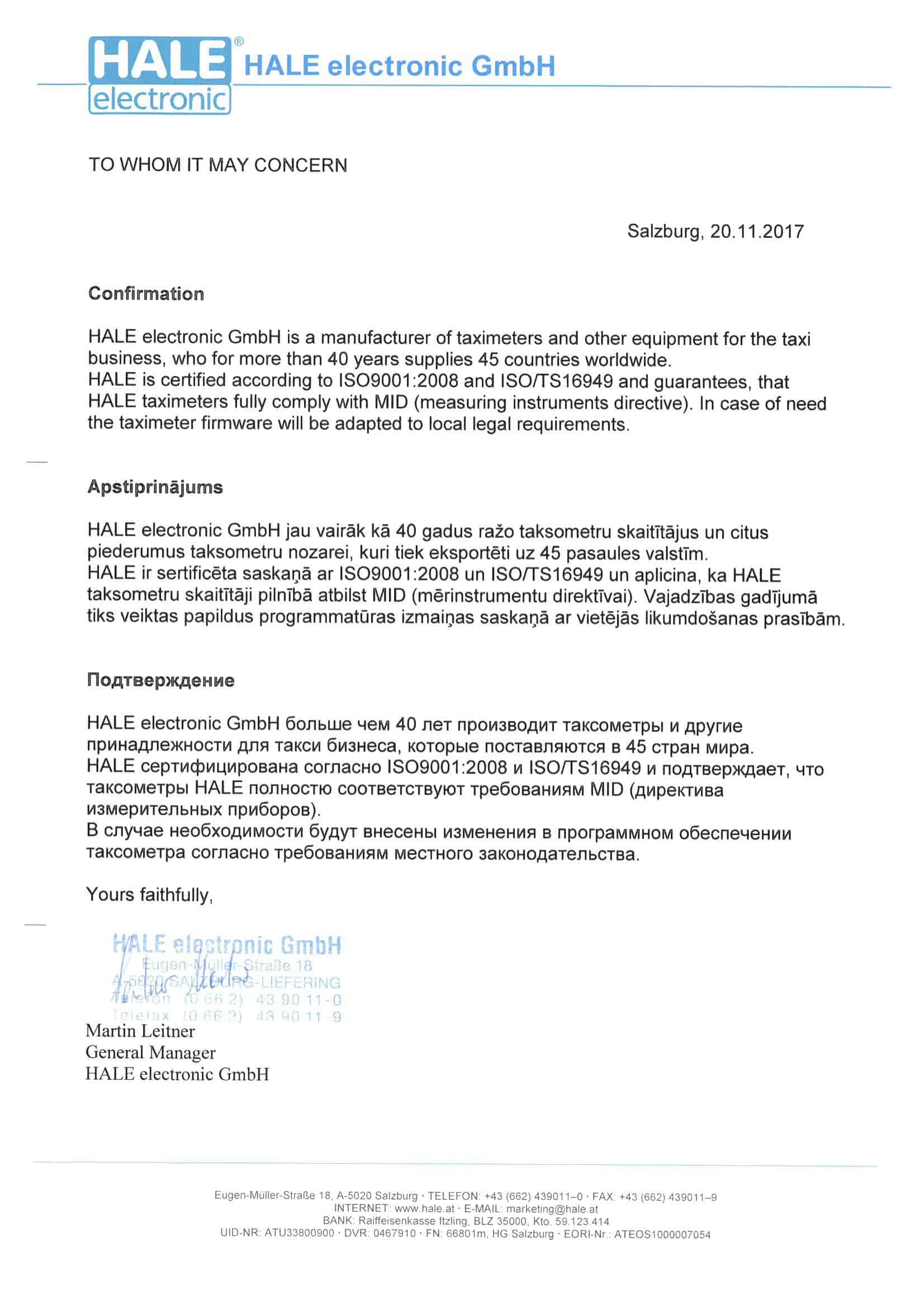 - Продажа и обслуживание ваучеров через программу водителя и счётчика HALE